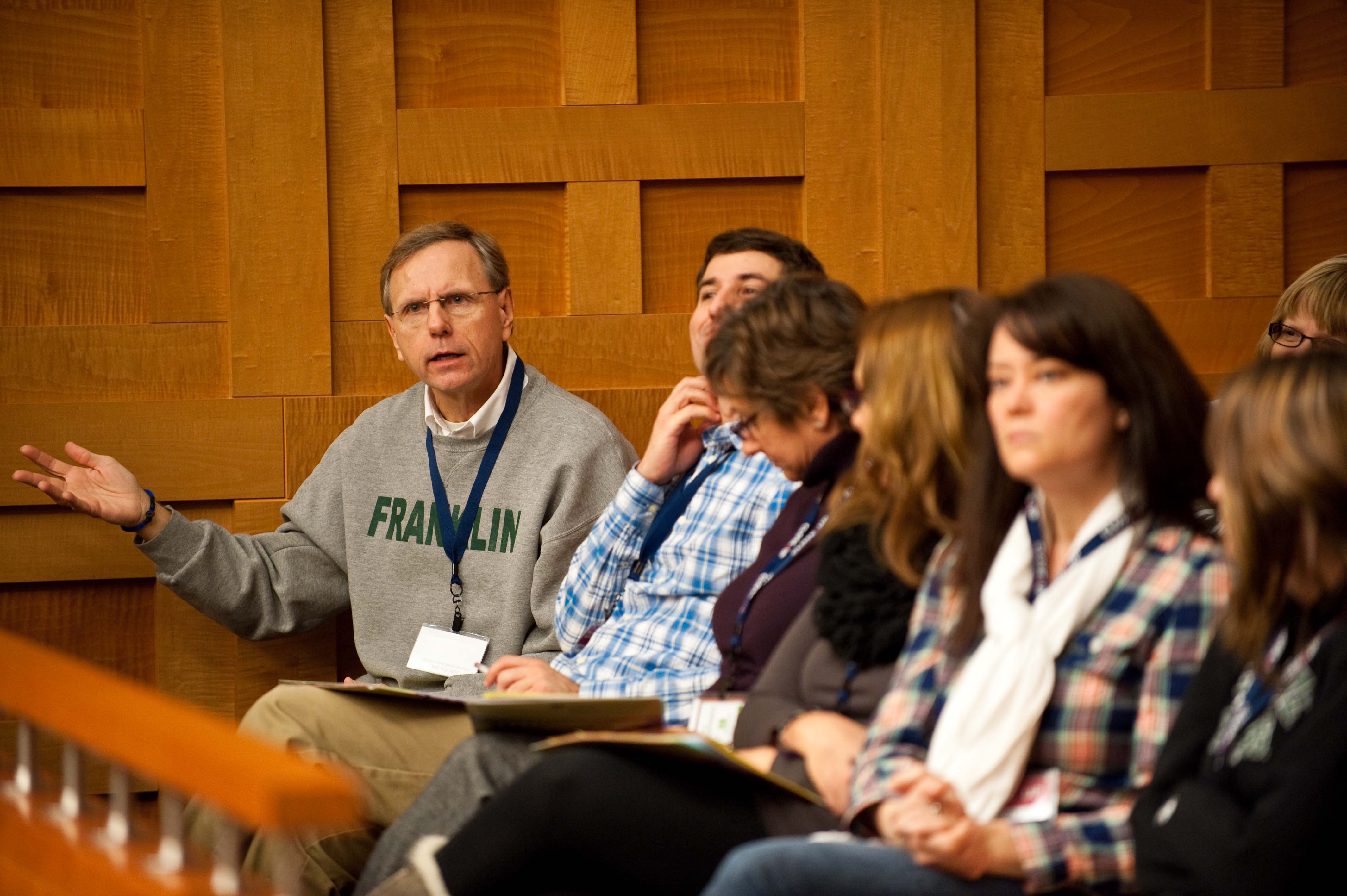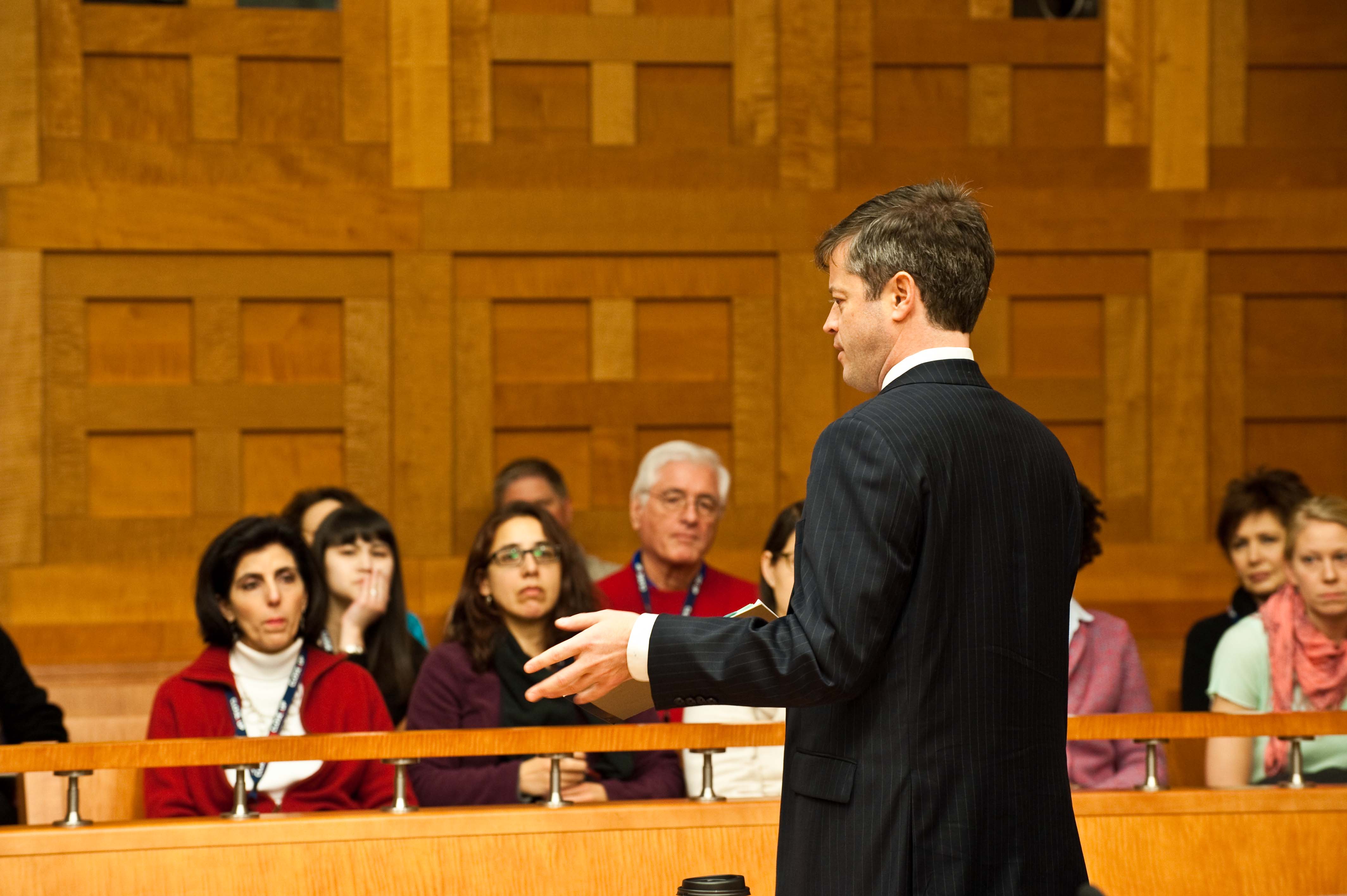 Assistant Federal Public Defenders Dani Jahn and Jonathan Jeffress discuss the importance of the Supreme Court's landmark decision in Gideon v. Wainwright with a group of school teachers.