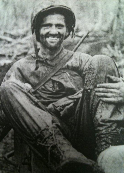 The day we landed, our commanding officer sent out the intelligence squad to clear the area as best they could and find out what would be our boundaries. Well, he never reported back, and the colonel sent me out to find him. So I went out and I found him on a jungle trail, with his squad just all down, having been shot. … There were a couple of Marines who were sort of dazed, and I asked what the hell was going one, and they said they were crossing a trail and this machine gun opened up. They said, “One of our buddies is out there, and the machine gunners have shot him in the leg several times, and he can’t move.” … Fortunately, I had some hand grenades, so I hollered to the guy, and told him to keep his head down, and I tossed a hand grenade . ... I jumped over the ; ;tree and grabbed this guy and dragged him to one of these trenches the Japs had, and we got another Marine, and the two of us dragged this guy… to a place where it was safe to pull him out.