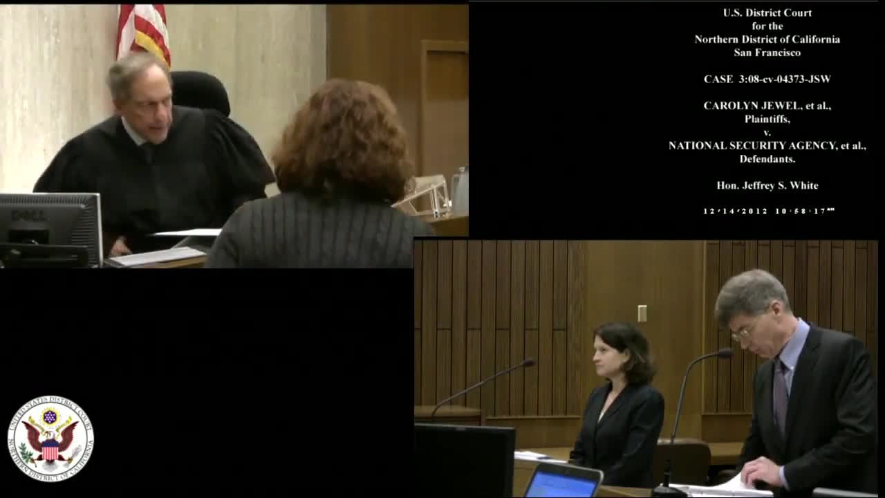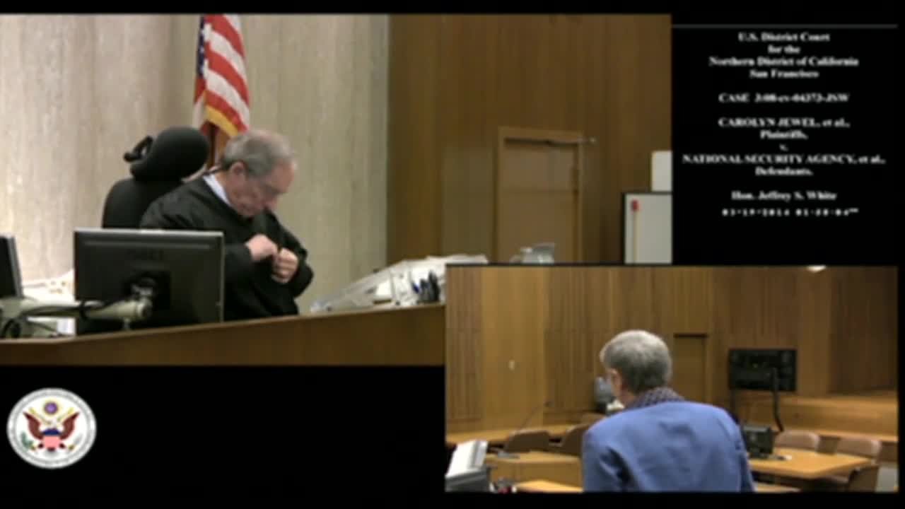Defendants are claiming that the information necessary to litigate plaintiff's claims is subject to and excluded from use by the "states secrets privilege" and other related privileges and that their cases should be dismissed. Plaintiffs counter that Congress displaced the "states secret privilege" in electronic surveillance actions when it enacted FISA. Plaintiffs filed a motion for partial summary judgment to have the trial court rule on that issue. This video is of the hearing on that motion.