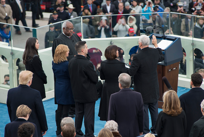 As they have throughout American history, members of the U.S. Supreme Court took part in this year’s inauguration on January 20, 2017. Their participation is documented in the accompanying photos. Chief Justice John G. Roberts, Jr. administered the oath of office to Donald Trump, the nation's 45th president, and Associate Justice Clarence Thomas administered the oath to the new vice president, Michael Pence.