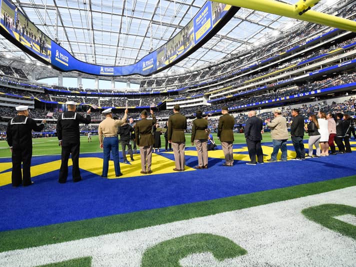 U.S. Bankruptcy Judge Sandra R. Klein, of the Central District of California, administered the Oath of Allegiance to the new American citizens. The naturalization ceremony, the first at the 70,000-seat SoFi Stadium in Inglewood, California, was timed to coincide with Veterans Day weekend. Nine military service members and six first responders made up the group of new U.S. citizens.